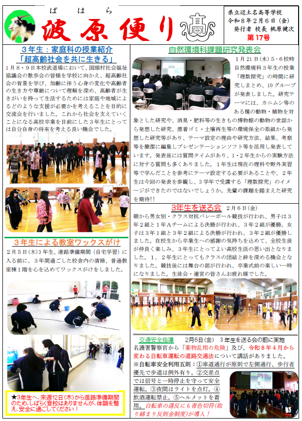 02月10日 令和7年度「ぱはら便り」第17号